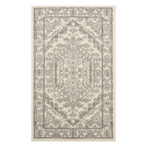 Safavieh Medaljong matta för vardagsrum, matsal, sovrum – Adirondack kollektion, kort lugg, i elfenben och silver, 91 x 152 cm