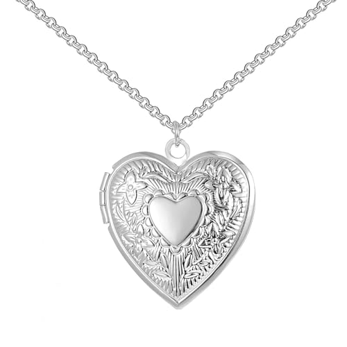Hjärta fotokedja silver 925 med bild: Halsband damer ängel medaljong att öppna för bilder – mode blomma fe hänge kedjor amulett smycken – personlig gåva för kvinnor mamma flickvän flicka,