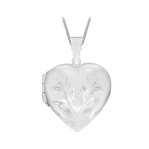 Tuscany silver sterling silver stort graverat hjärta medaljong hänge på trottoarkedjan på 46 cm/18 tum