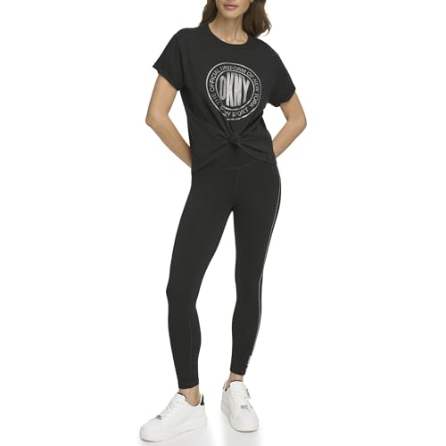 DKNY kvinnors strass-medaljong t-shirt, svart/silver, XS, svart, XS