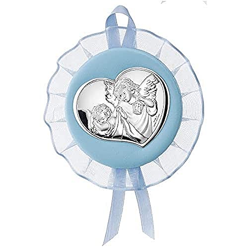 Valenti&Co. - Medaljong för vagga – med ängelmotiv – silver – för att hänga på vaggan, barnvagnen eller i babyrummet – perfekt som en presentidé för födelse eller dop