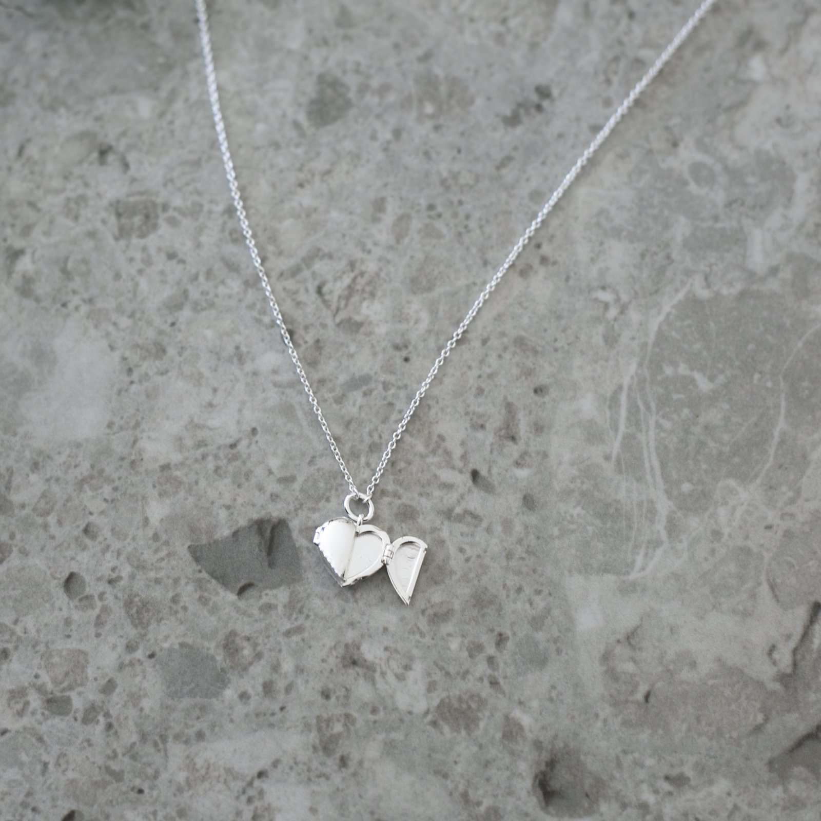 Öppningsbar hjärta medaljong, Halsband med gravyr - Silver