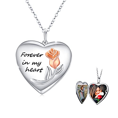 Hjärta medaljong halsband 925 sterling silver ros blomma medaljong för kvinnor för evigt i mitt hjärta medaljong halsband 2 bilder foto medaljong halsband för mamma dotter fru alla hjärtans dag