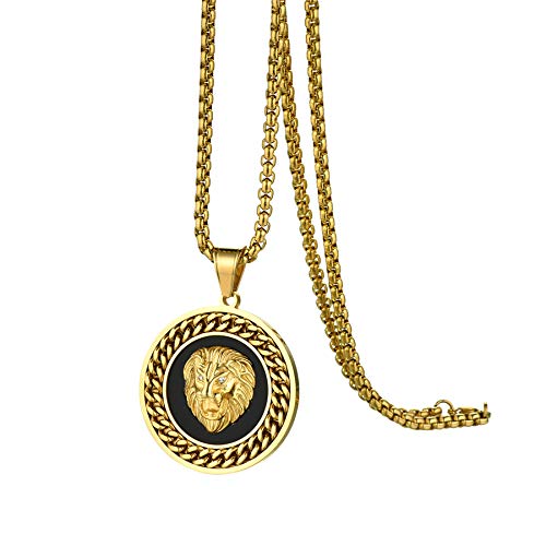 Flongo halsband för män medaljong rostfritt stål med hänge lejon huvud lejonhuvud strass krona king tog dag platta kedja viking kungskedja kedja för män guld silver svart, Rostfritt stål, Ingen