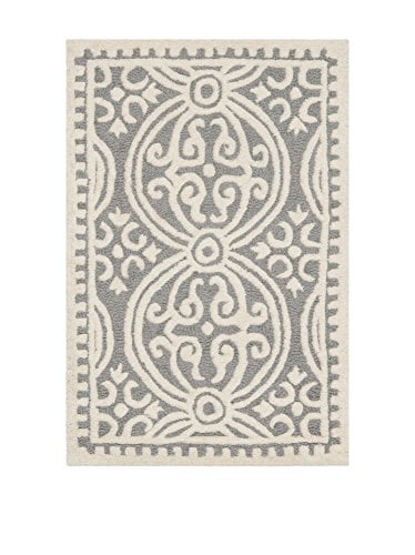 Safavieh Medaljong inomhus handtuftad rektangel områdesmatta, Cambridge-kollektion, CAM123, i silver/elfenben, 91 x 152 cm för vardagsrum, sovrum eller alla inomhusutrymmen