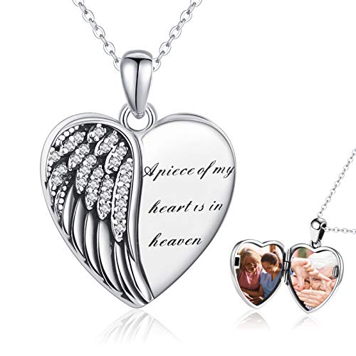 CHENGHONG medaljong halsband 925 sterling silver ängel vingar hänge hjärtformat medaljong halsband som håller bild minneshalsband minne smycken gåvor för kvinnor flickor .., Sterlingsilver