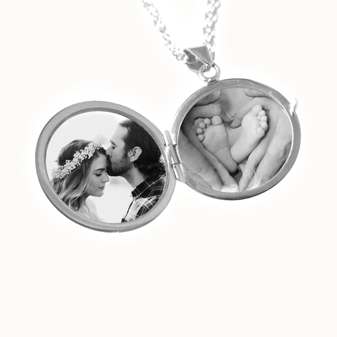 Öppningsbar medaljong, Halsband med gravyr - Silver