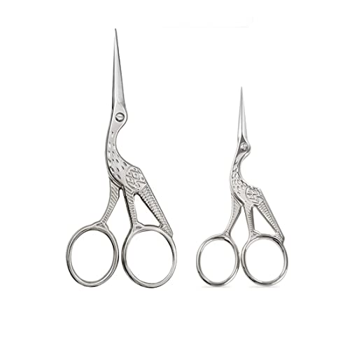 2-pack fågeldesignsax, sysax, handväsksax, trådklippningssax, designsax, saxar för tygskärning, sax, presentsax, (9 + 12 cm, silver)