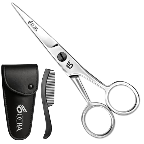Utopia Care Böjd och Rundad Ansiktshårssax för Män - Sax för Mustasch, Näshår och Skägg, Säker Användning för Ögonbryn, Ögonfransar och Öronhår - Professionellt Rostfritt Stål - Silver