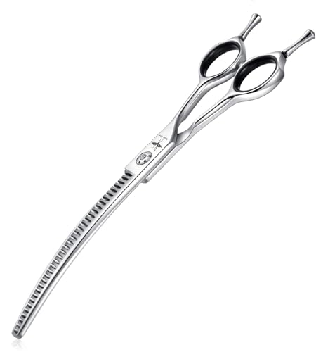 Saxskulptörer, professionella, för hundar, katter, tjockt långt hår, sax, skötsel, rund tå, säkerhet i rostfritt stål, böjd böjd sax, djur, nybörjare, lyx 6,5", silver