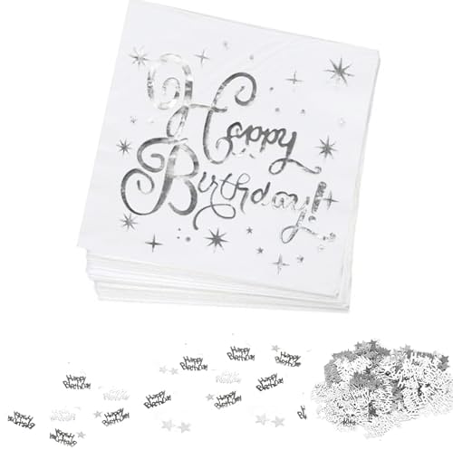 40 stycken pappersservetter, grattis på födelsedagen, vita servetter, grattis på födelsedagen, pappersservetter, för fest, pojkar och flickor, elegant bordsdekoration för födelsedagar (silver)