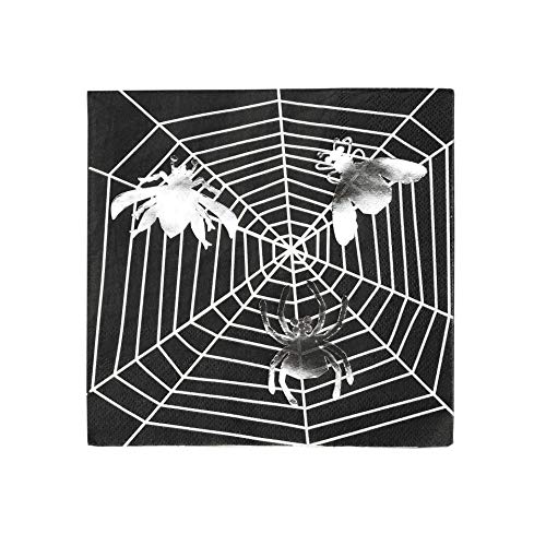 Talking bord dekorationer spindelnät servetter papper halloween fest 16 pack, silverfolie, jul