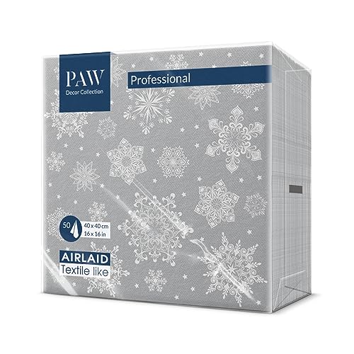 PAW – Airlaid servetter (40 x 40 cm) I 50 stycken I perfekt för jul, vinter, semester I julafton bordsdekoration I Airlaid-servetter tygliknande – snöflingor silver I snöflingor silver