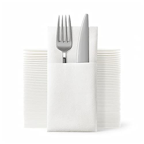 JEBBLAS Engångstyg som servetter inbyggd bestickficka, bröllopsfest linne känsla vit servett, förbehandlad för silver, 50 st
