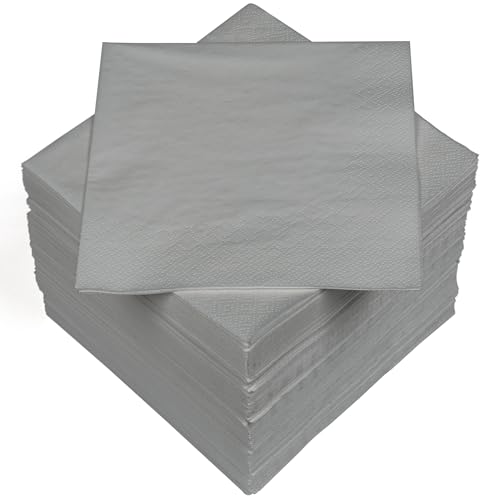 Graziano, Biologiskt nedbrytbara pappersservetter för engångsbruk, perfekt för fester och pastor, 50-pack servetter, storlek 33 x 33, vikta i 4, dubbel slöja, ren cellulosadd, silver
