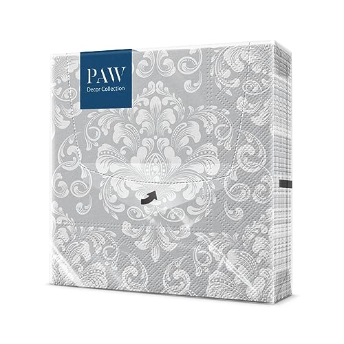 PAW – servetter 3-lager (33 x 33 cm) I 20 stycken I perfekt för födelsedagar, fester, bröllop, nattvard och fester I pappersservetter färgglada – speciella tillfällen, ornament, silver I inspiration