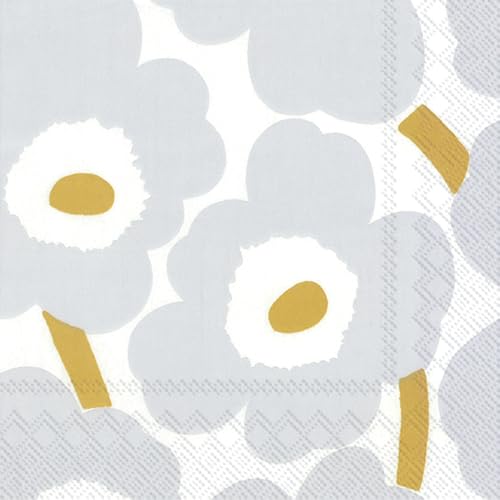 Marimekko UNIKKO cocktailservetter i vitt silver – 25 cm fyrkantiga 20 2-lagers servetter i ett paket