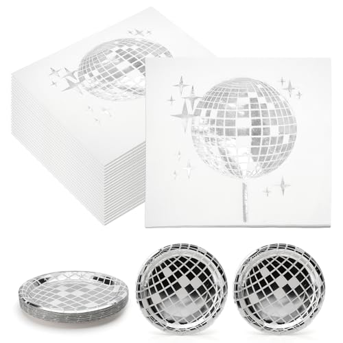 APOMOONS 25 stycken disco dekorativa servetter med 25 stycken disco party dekoration mattallrikar