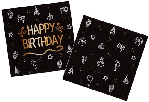 Folat 25047 Födelsedagsdekorationer Svart Guld Silver Servetter - Shining Glam-33 x 33 cm-16 stycken