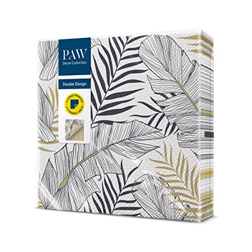 PAW – servetter 3-lager (33 x 33 cm) I 20 stycken I perfekt för födelsedagar, fester, bröllop, nattvard och fester I pappersservetter tryckta på båda sidor I blad, guld, silver, ränder I Exotic