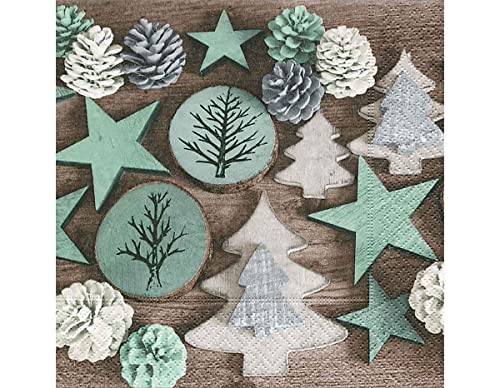 PAW – servetter 3 lager (33 x 33 cm) I 20 stycken I pappersservetter färgglada perfekt för julbordet I servetter – jul, vinter, stjärnor, snö I snöflingor silver