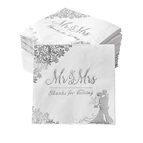200 st silver bröllopsservetter för mottagningen herr och fru bröllop cocktail servetter, engångsservetter för bröllop, förlovning, möhippa festdekorationer