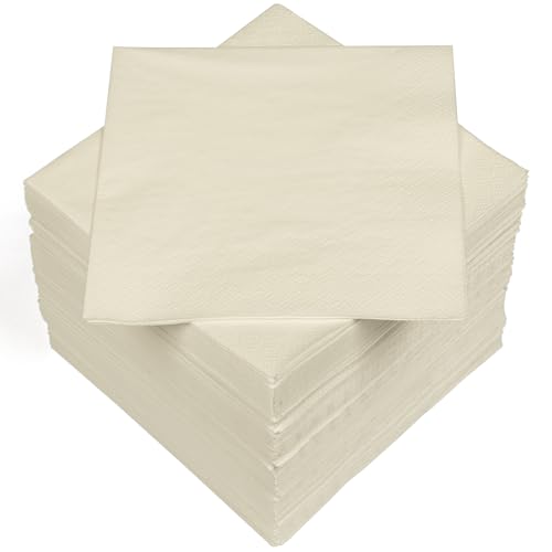 HEKU 100 enfärgade servetter, 3 lager, 33 x 33 cm I Enhetlig kvalitet för evenemang och gastronomi I praktisk 5-pack I mycket absorberande och snygg, gräddvit