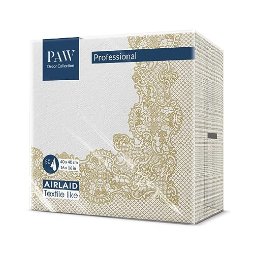 PAW – servetter av Airlaid – tygliknande (40 x 40 cm) I 50 stycken I perfekt för bröllop, dop, nattvardsgång, födelsedag I tygservetter – ornament, guld, ram I färg: Royal Lace (guld)