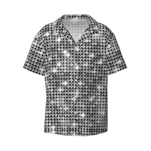 GXUNGT Silver paljett gnistrande mönster tryck herr snygg kubansk krage kortärmad button down-skjorta, perfekt för utomhusaktiviteter, Svart, 4XL