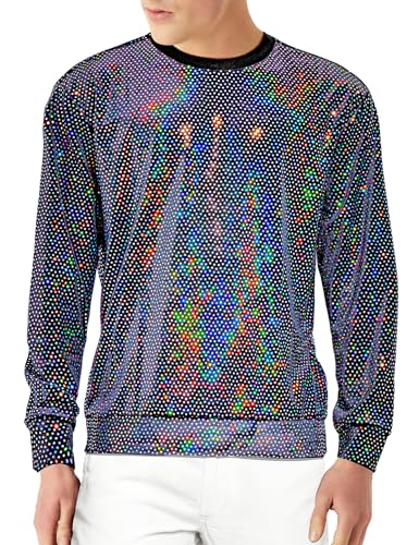Casey Kevin Herr Paljetter Långärmad Män Glitter T-shirt Guld och Silver Disco Club Rave Party Skjorta