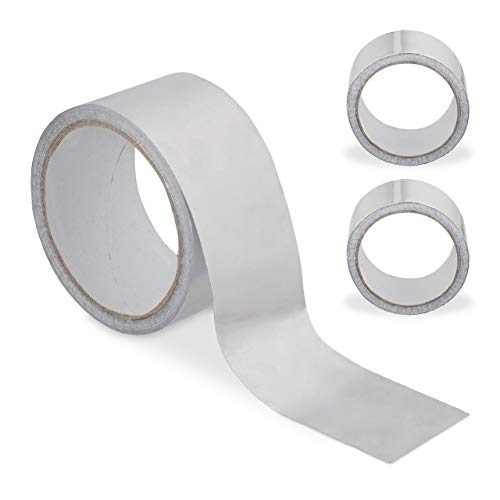 Relaxdays självhäftande tejp i aluminium, 3-pack, vatten- och värmebeständig, reparation, tätning, 48 mm bred, 10 m lång, silver