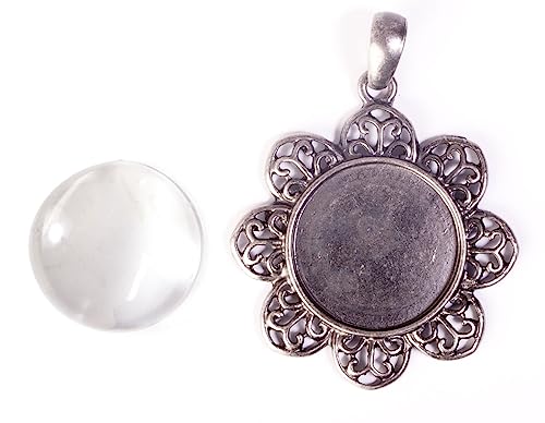 INNSPIRO Åldrad silverfärgad blomma komeo hänge med diamant glas. ext. 43mm. diam. int. 25mm., 25mm, Metall