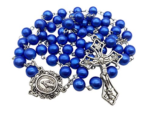 Nazareth butik blå pärlor radband halsband katolska män kvinnor radband med mirakulöst medalj och silverkors