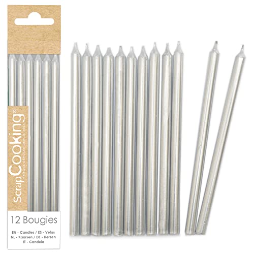 12 långa silverljus 12 cm
