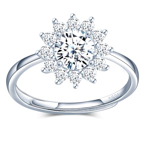 MICMIF ring solros solitär zirkonia 925 silverringar för kvinnor kvinnor flickor justerbar ring förlovningsring förlovningsring årsdag ring zirkonia diamant silverringar smycken, Silver Silver