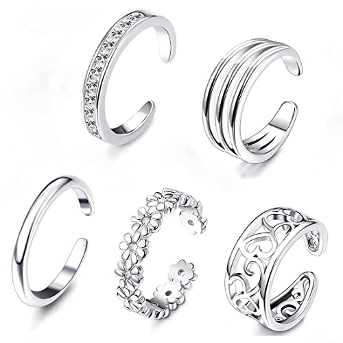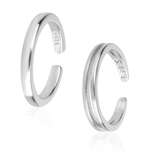 Mikovivi 2st Sterlingsilverringar med Öppna Tåringar, 2 Stilar Justerbara Silverringar Enkel Design Sommar Strand Fotsmycken Som Inte Fläckar ner Fotsmycken för Kvinnor