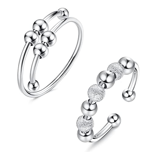 Hifot Silverringar, 4 st. roterande anti-stress-ringar, anti-ångest ringar för kvinnor, med kristall och radband, presenter till kvinnor, flickor, män, one size, Metall, Kristall