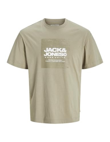 JACK&JONES JCOAERO Front Print Tee SS Crew Neck, Silversalvia, L