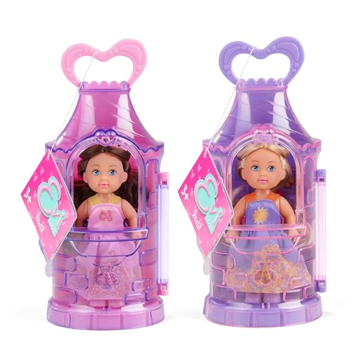 Simba Evi Love Tower – Evi prinsessdocka (12 cm) med krona i det magiska tornet, slumpmässigt färgval, fantasifullt rollspel för barn från 3 år