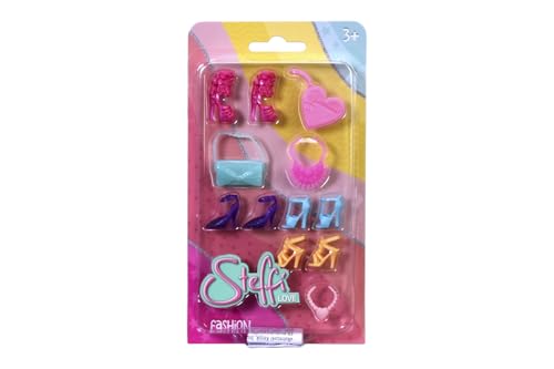 Simba Steffi Love Fashion Set – modetillbehör för omklädningsdockor, 12-delat tillbehörsset med skor, handväskor och kedjor, lämplig för 29 cm dockor, docktillbehör från 3 år
