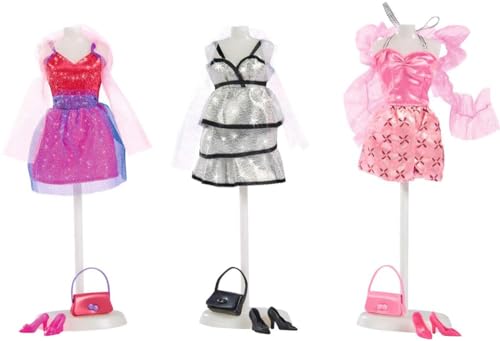 Simba 105724990 – Steffi Love Glam Party, 3-fack sorterad, det kommer bara att levereras med en artikel, glamoröst festmode för alla 29 cm omklädningsdockor, utan docka, från 3 år