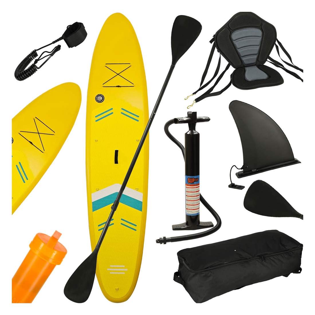 SUP uppblåsbar simbräda med sitttillbehör paddelset gul 350 cm