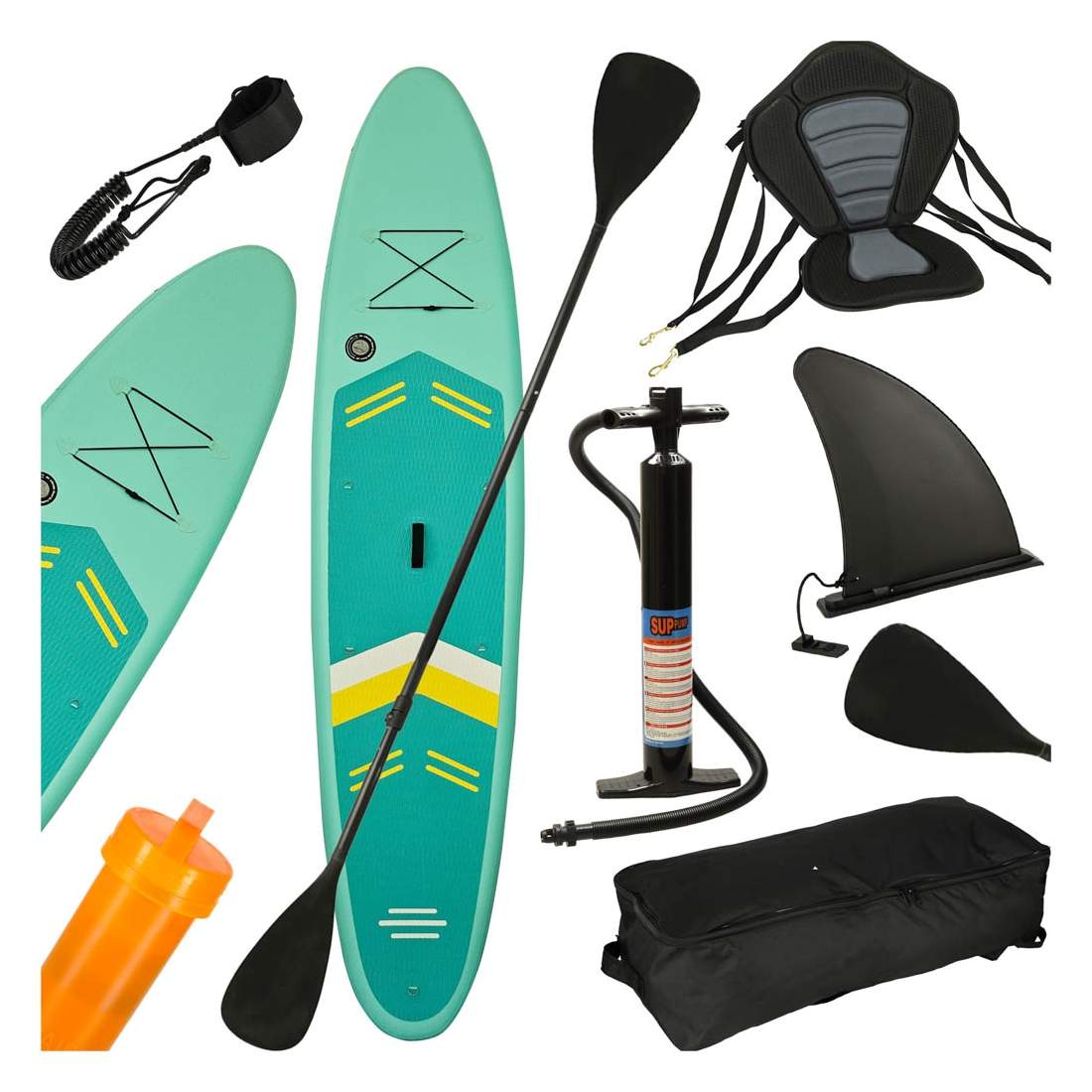 SUP uppblåsbar simbräda med sitttillbehör paddelset turkos 350 cm