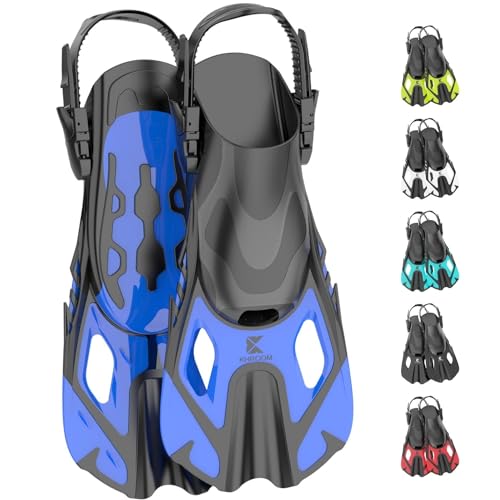 Khroom korta fenor vuxna/barn storlek 32–47 | justerbara snorkelfenor kort | simfenor för snorkling | dykfenor justerbara för simning/dykning (Blå 37-41)