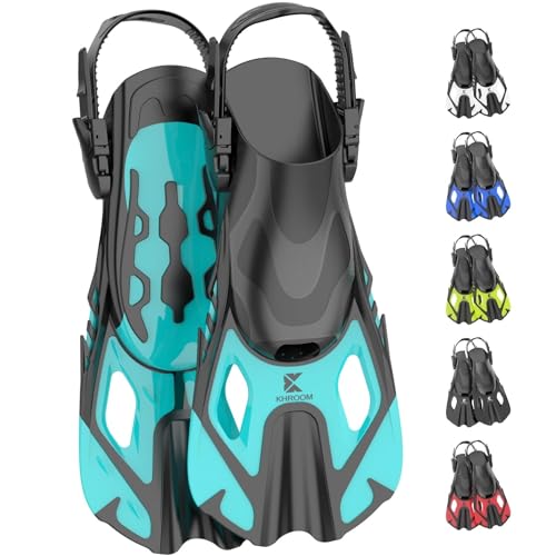 Khroom korta fenor vuxna/barn storlek 32–47 | justerbara snorkelfenor kort | simfenor för snorkling | dykfenor justerbara för simning/dykning (Turkos 32-36)