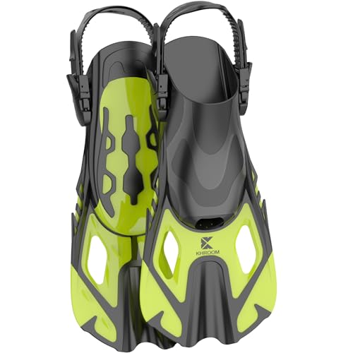 Khroom korta fenor vuxna/barn storlek 32–47 | justerbara snorkelfenor kort | simfenor för snorkling | dykfenor justerbara för simning/dykning (Grön 37-41)