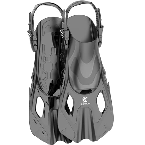 Khroom korta fenor vuxna/barn storlek 32–47 | justerbara snorkelfenor kort | simfenor för snorkling | dykfenor justerbara för simning/dykning (Svart 37-41)