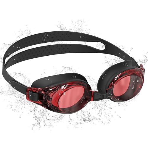 Seaflar simglasögon för vuxna – anti-dimma UV-skydd, vattentät, klar blick – enkla justerbara simglasögon för män kvinnor ungdomar-C-BKRED