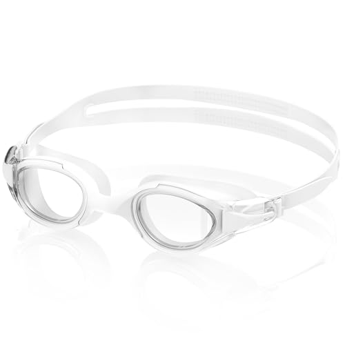 AqtivAqua simglasögon för vuxna och barn, simglasögon för barn 6-14 år, simglasögon för män och kvinnor och barn. Simglasögon för pojkar och flickor DX-C (transparent vit, silveretui, klara linser).