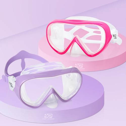 Barn dykglasögon 180° panorama barn snorkelmask, anti-dimma dykmask härdat glas simmask pojke silikon dykmask flicka simglasögon med nässkydd 4–16 (rosa + lila 2 st)